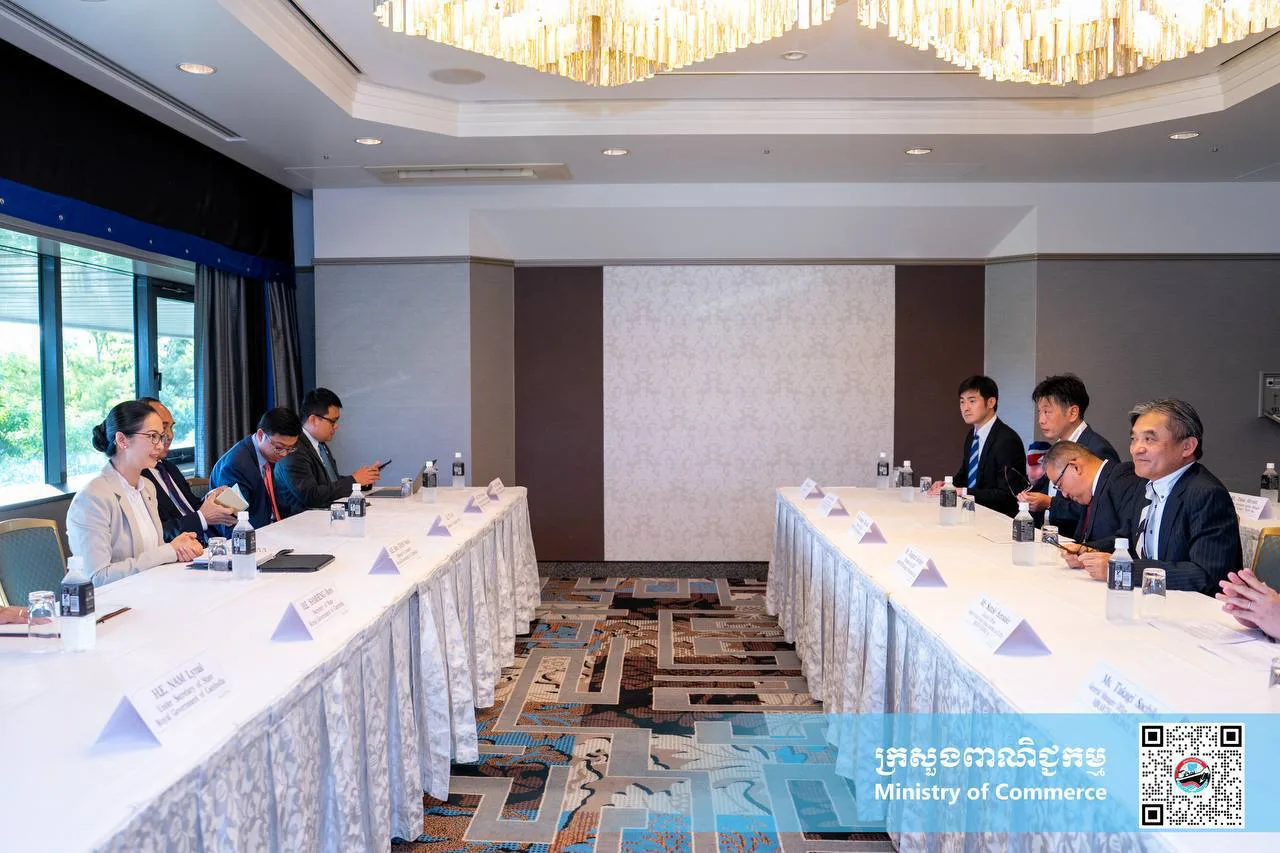 (អូសាកា, ប្រទេសជប៉ុន)៖ នាល្ងាចថ្ងៃពុធ ទី៣ ខែកញ្ញា ឆ្នាំ២០២៥ នៅទីក្រុងអូសាកា តំបន់កាន់សៃ ប្រទេសជប៉ុន លោកស្រី ចម និម្មល រដ្ឋមន្ត្រីក្រសួងពាណិជ្ជកម្ម បានអនុញ្ញាតជូន លោក Taniguchi Kentaro អគ្គនាយកក្រុមហ៊ុន Mirarth Energy Solutions Inc., គណៈប្រតិភូ Mirarth Holdings, Inc., តំណាងក្រុមហ៊ុន ITOCHU Corporation និងសហការី ចូលជួបសម្តែងការគួរសម និងពិភាក្សាការងារ។
