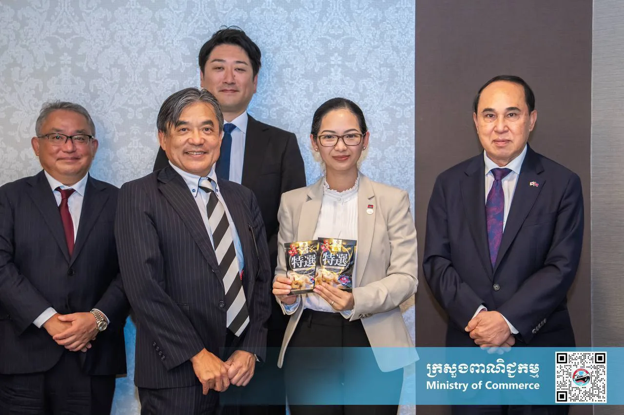 The Minister also congratulated the signing of the Letter of Intent between the Ministry of Commerce and Mirarth Holdings Inc. and the Memorandum of Understanding between Mirarth Holdings Inc. With 5 partners to promote the import and distribution of Cambodian cashew nuts to the Japanese market on the occasion of Cambodian National Day in conjunction with the Osaka Kansai World Expo 2025 on July 5, 2025.