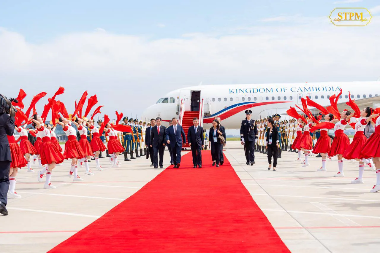Samdech Tepdei Hun Manet, Prime Minister of Cambodia, led a delegation of the Royal Government of Cambodia, arriving at Tianjin Binhai International Airport in Tianjin and was welcomed by HE HUANG Runqiu, Minister of Ecology and Environment of the People’s Republic of China, on the afternoon of August 30, 2025.