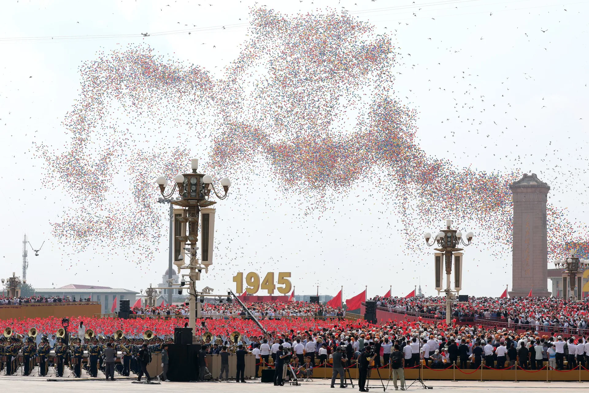 មេដឹកនាំ​ចិន រុស្ស៊ី និង​កូរ៉េ​ខាង​ជើង ត្រូវ​បាន​គេ​ថត​រូប​ដើរ​ទៅ​កាន់​ក្បួន​ដង្ហែ​ជាមួយ​គ្នា។ វា​ជា​រូបភាព​ដ៏​គួរ​ឲ្យ​ចាប់​អារម្មណ៍ ដែល​ត្រូវ​បាន​គេ​ដាក់​បញ្ចាំង​លើ​អេក្រង់​ធំៗ​ក្នុង​ទីក្រុង​ប៉េកាំង។